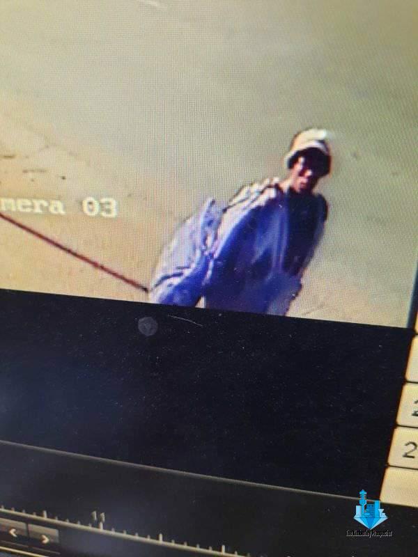 Screenshots of CCTV footage show the suspect carrying a blue bag over his left shoulder.