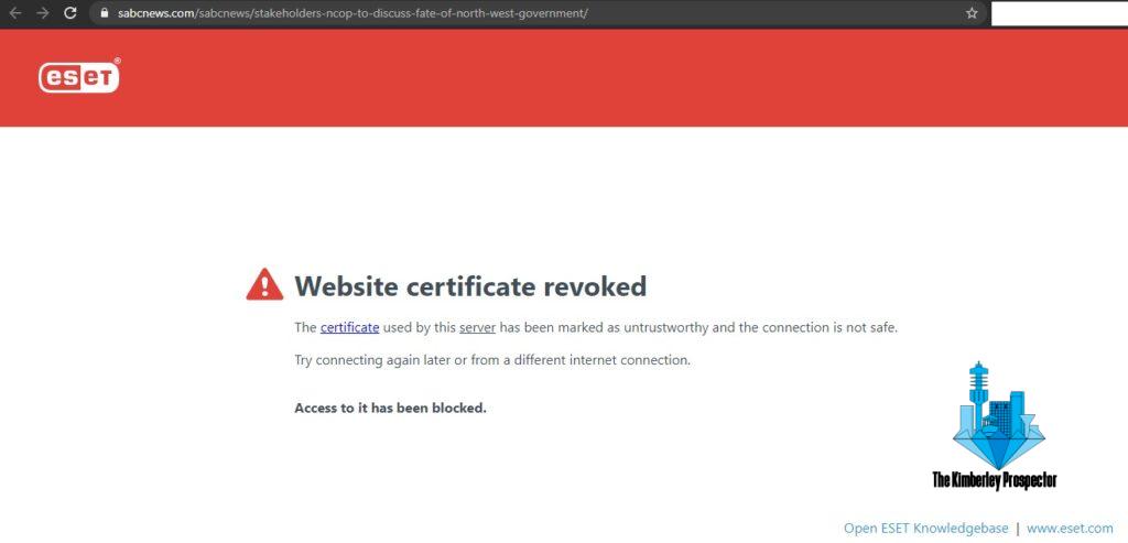 The SABC’s website has been blocked by Eset Internet Security antivirus software.
