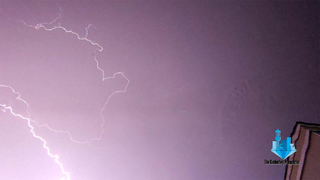 Severe weather conditions caused chaos in Kimberley this evening, 21 March 2023, as lightning strikes peaked at 16 flashes per minute. Shoppers were seen running for their cars and taking shelter along the walkway, while pets ran for their lives from the roaring thunder. The South African Weather Service has issued an alert for Severe Thunderstorms, warning of possible damage to infrastructure and communication disruption.
