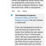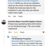The newspaper points to the fact that past municipal spokespersons have not responded to media inquiries from the Kimberley Prospector for years and that the municipality has generally ignored or deflected media inquiries and questions, even when questioned on social media. Instead of giving straight-up answers Mayor Kagisho Sonyoni accused the newspaper of being on a witch hunt, but he has never responded to our important questions on social media.